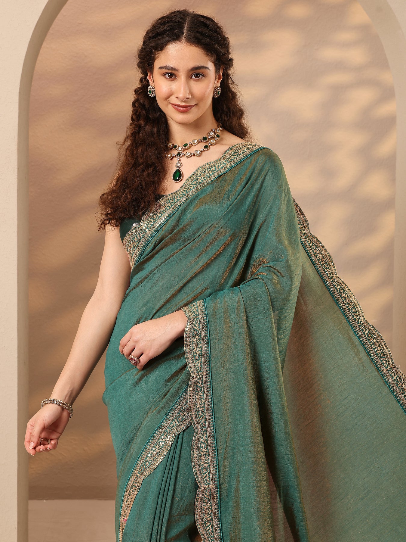 Our Green Solid Sarees Silk Blend Saree Features Captivating Solid. Complemented With An Unstitched Blouse Piece. This Charming Saree Is Perfect For Festive Occasions.