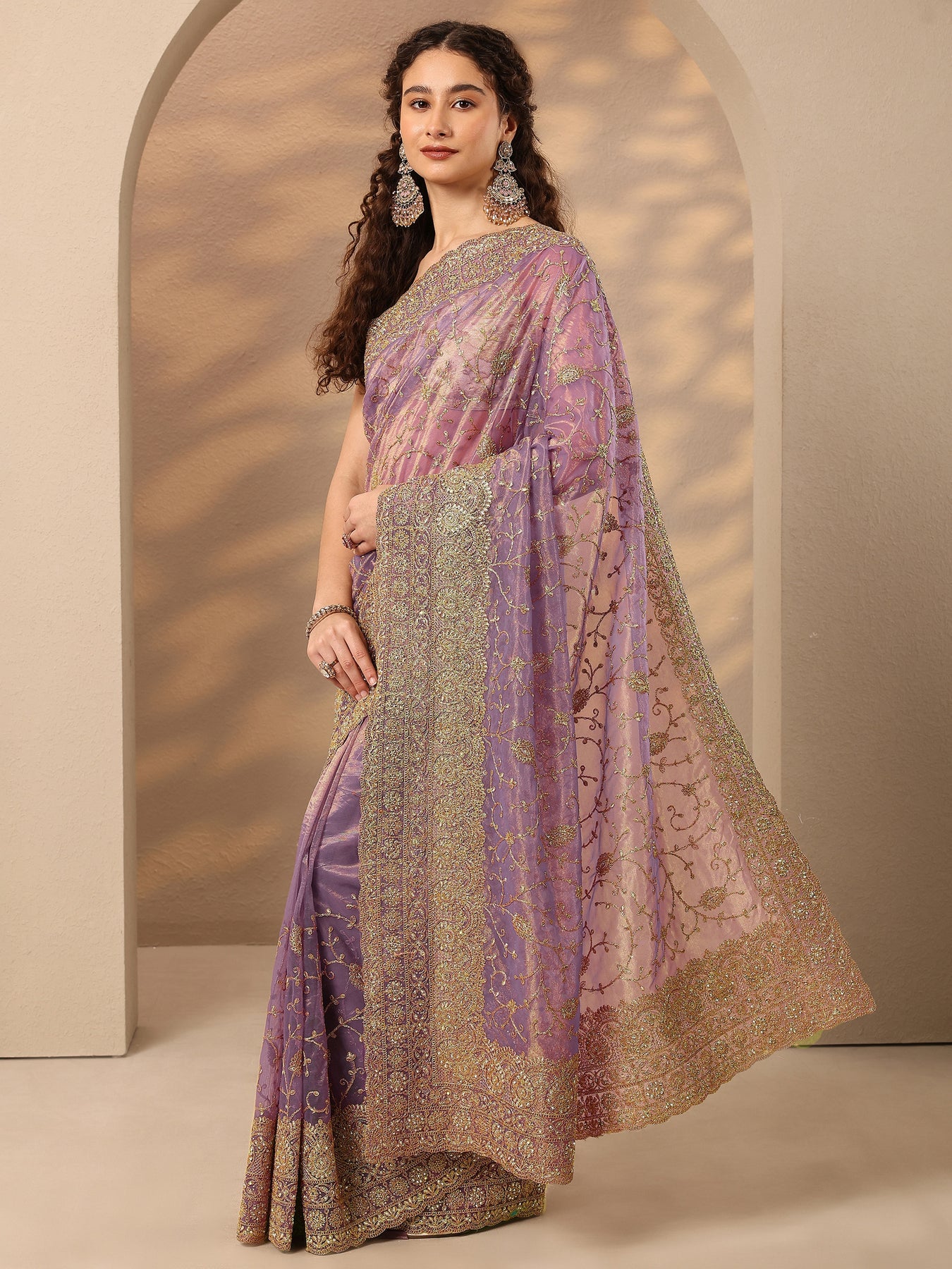 Our Lavender Embroidered Nylon Saree Features Captivating Floral. Complemented With An Unstitched Blouse Piece. This Charming Saree Is Perfect For Festive Occasions.