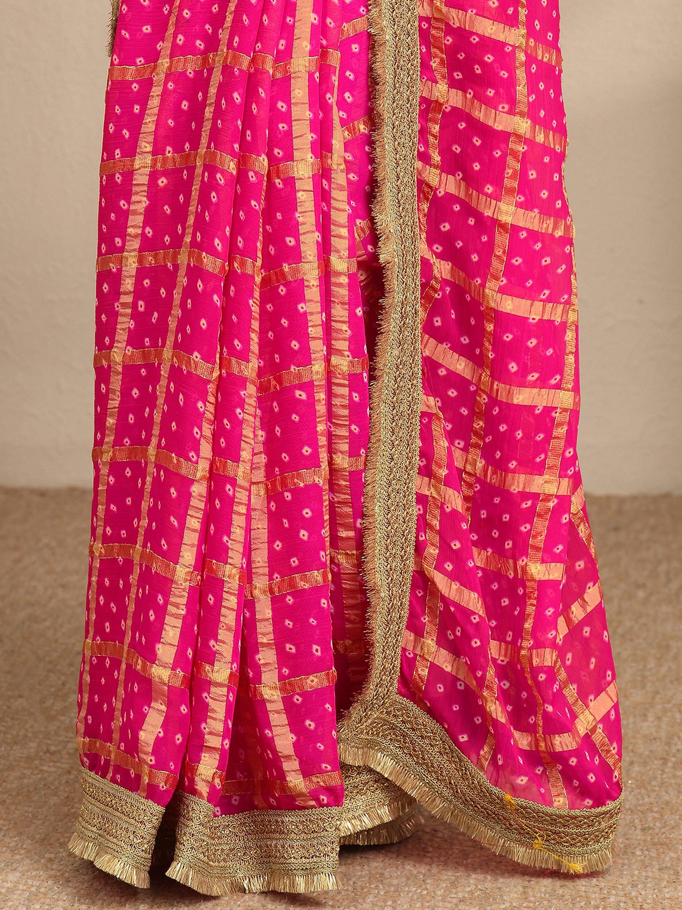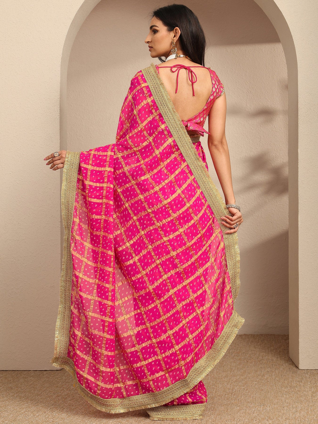Pink Bandhani Printed Silk Blend Saree With Unstitched Blouse Piece