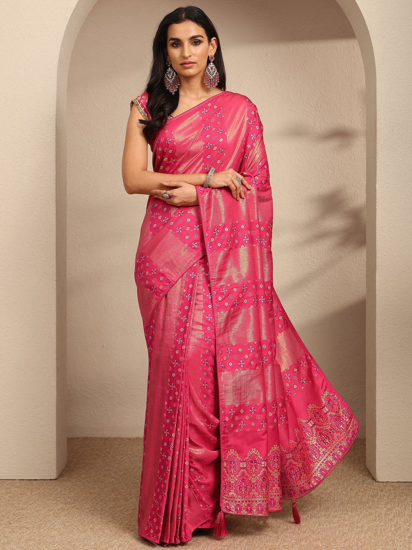 Pink Woven Design Silk Blend Saree With Unstitched Blouse Piece