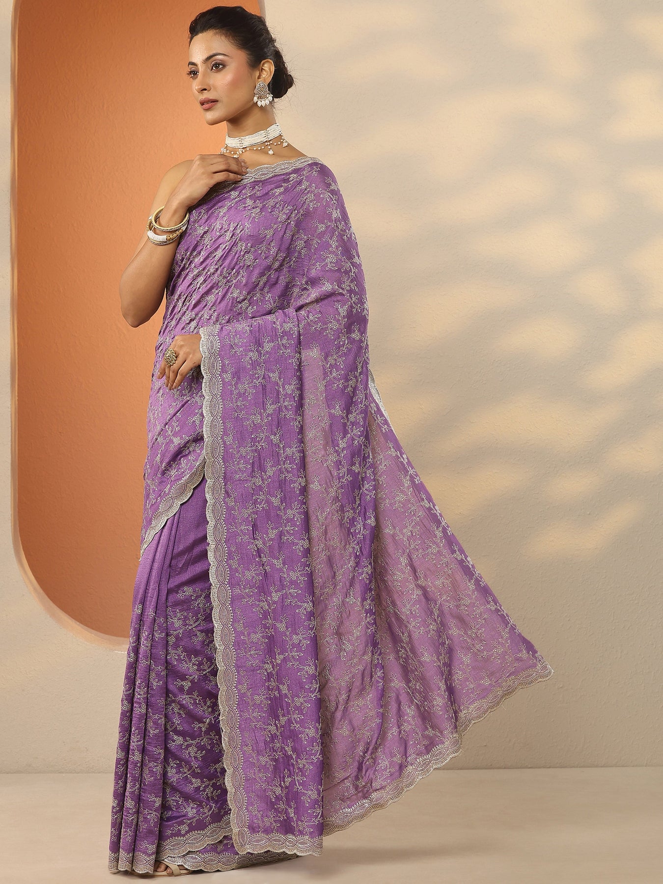 Purple Embroidered Silk Blend Saree With Unstitched Blouse Piece