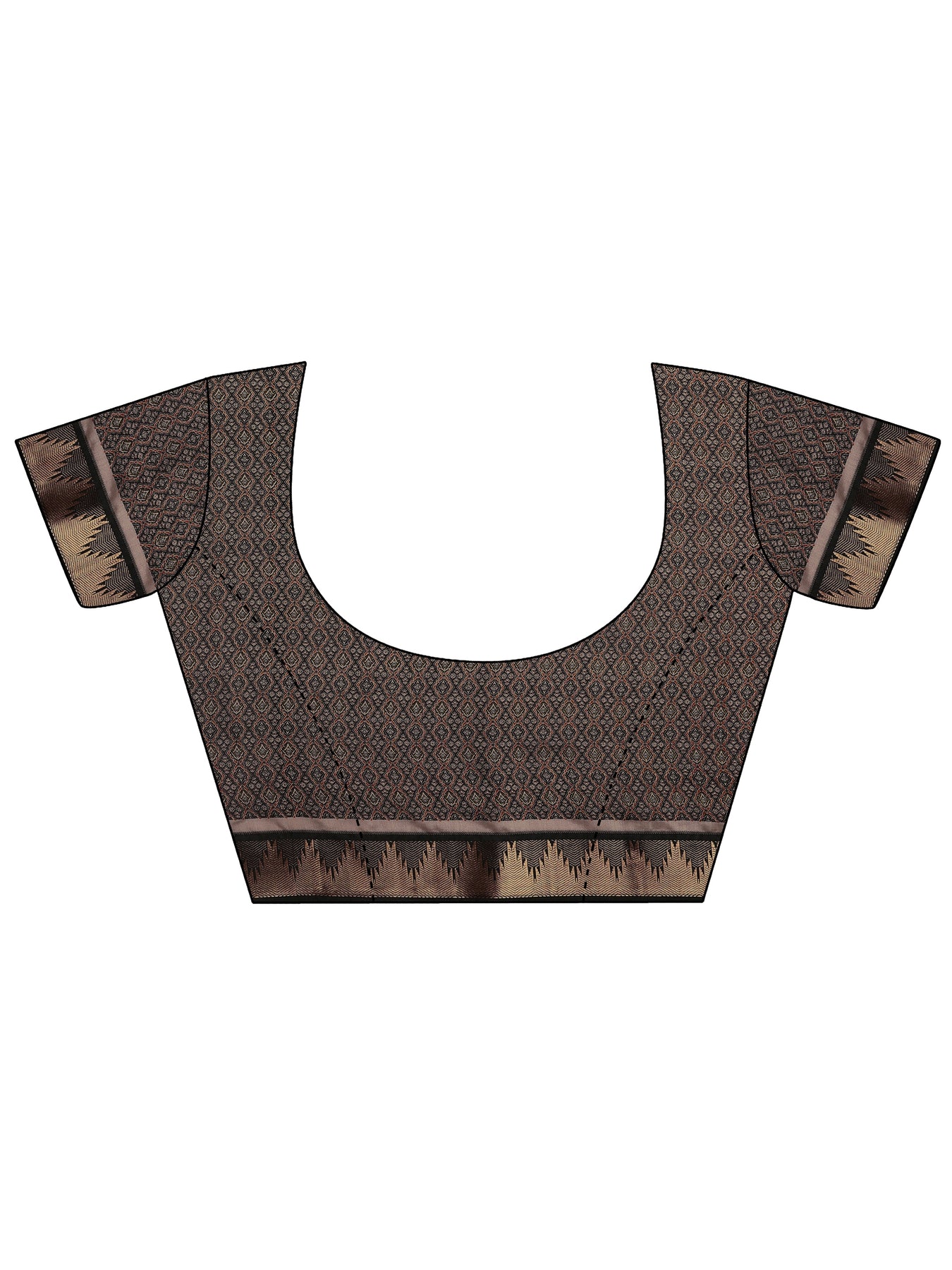 Beige Printed Silk Blend Saree With Unstitched Blouse Piece