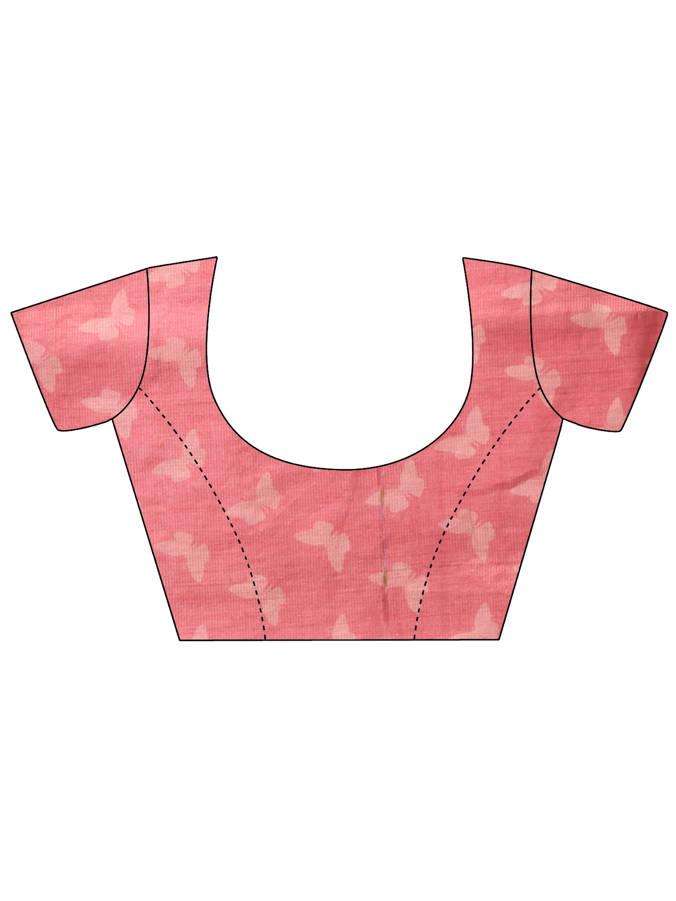 Beige Printed Silk Blend Saree With Unstitched Blouse Piece