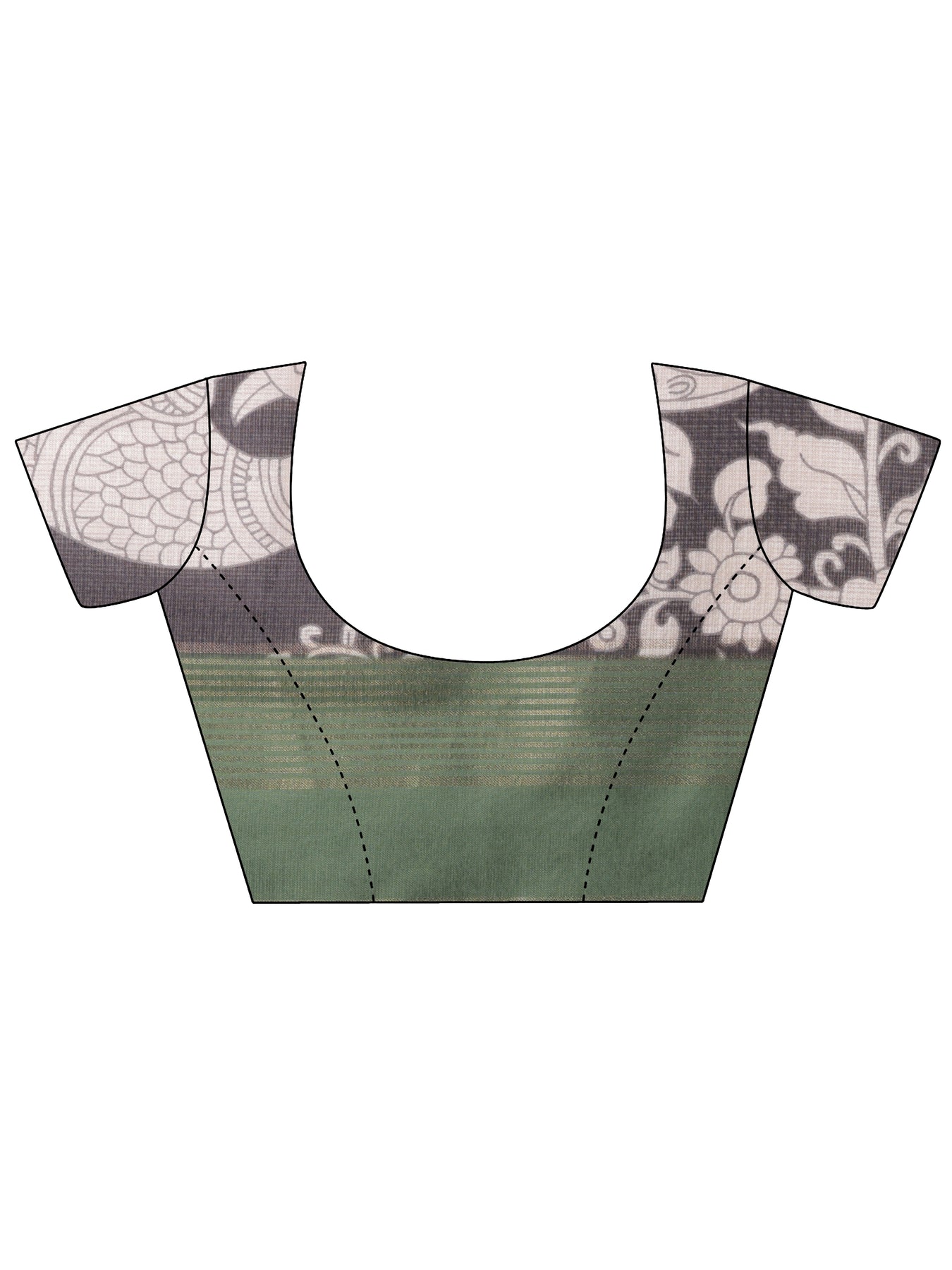 Black Printed Kota Saree With Unstitched Blouse Piece