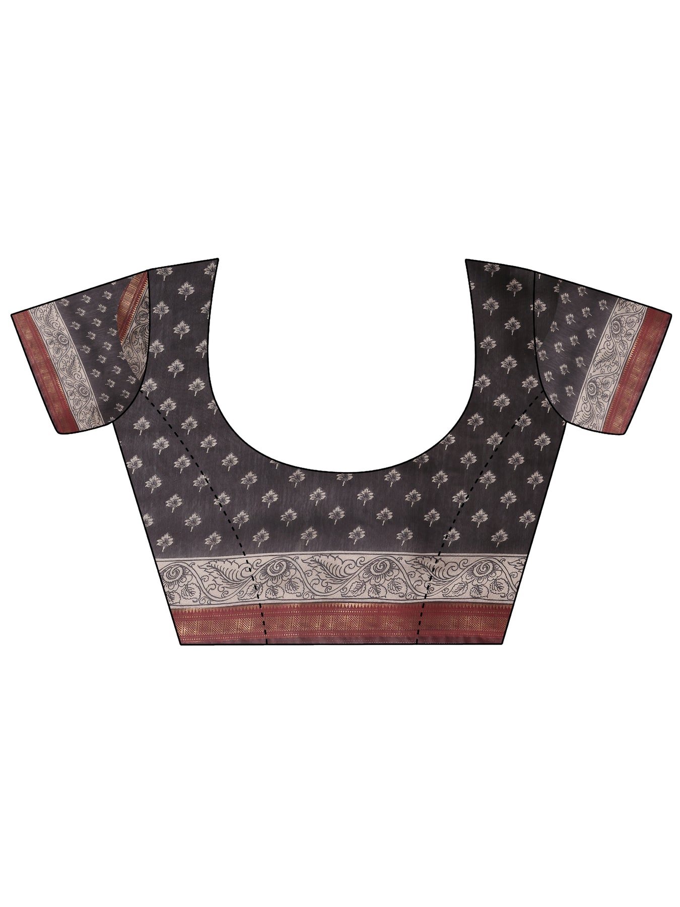 Black Printed Silk Blend Saree With Unstitched Blouse Piece