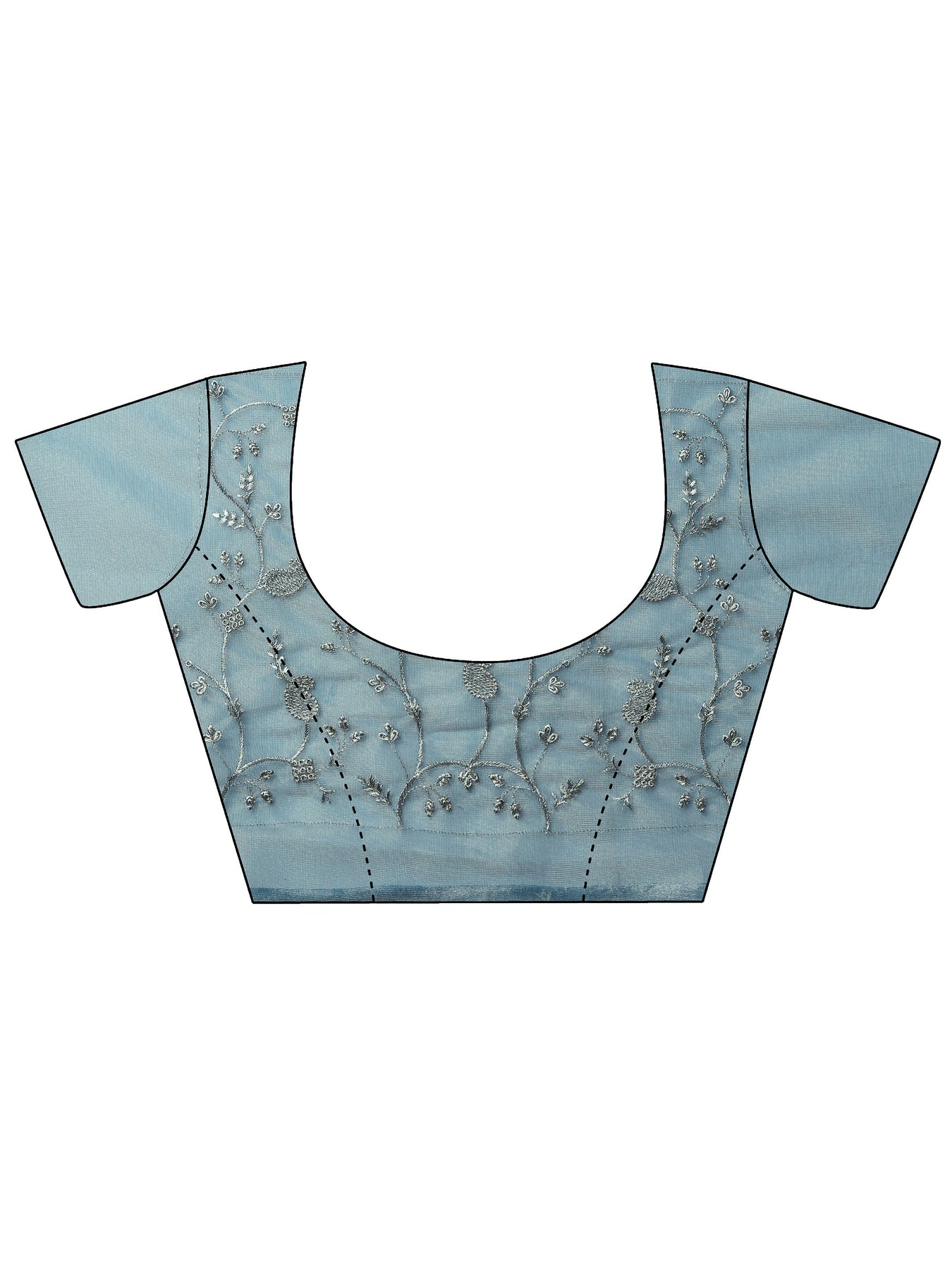 Blue Embellished Banarasi Nylon Saree With Unstitched Blouse Piece