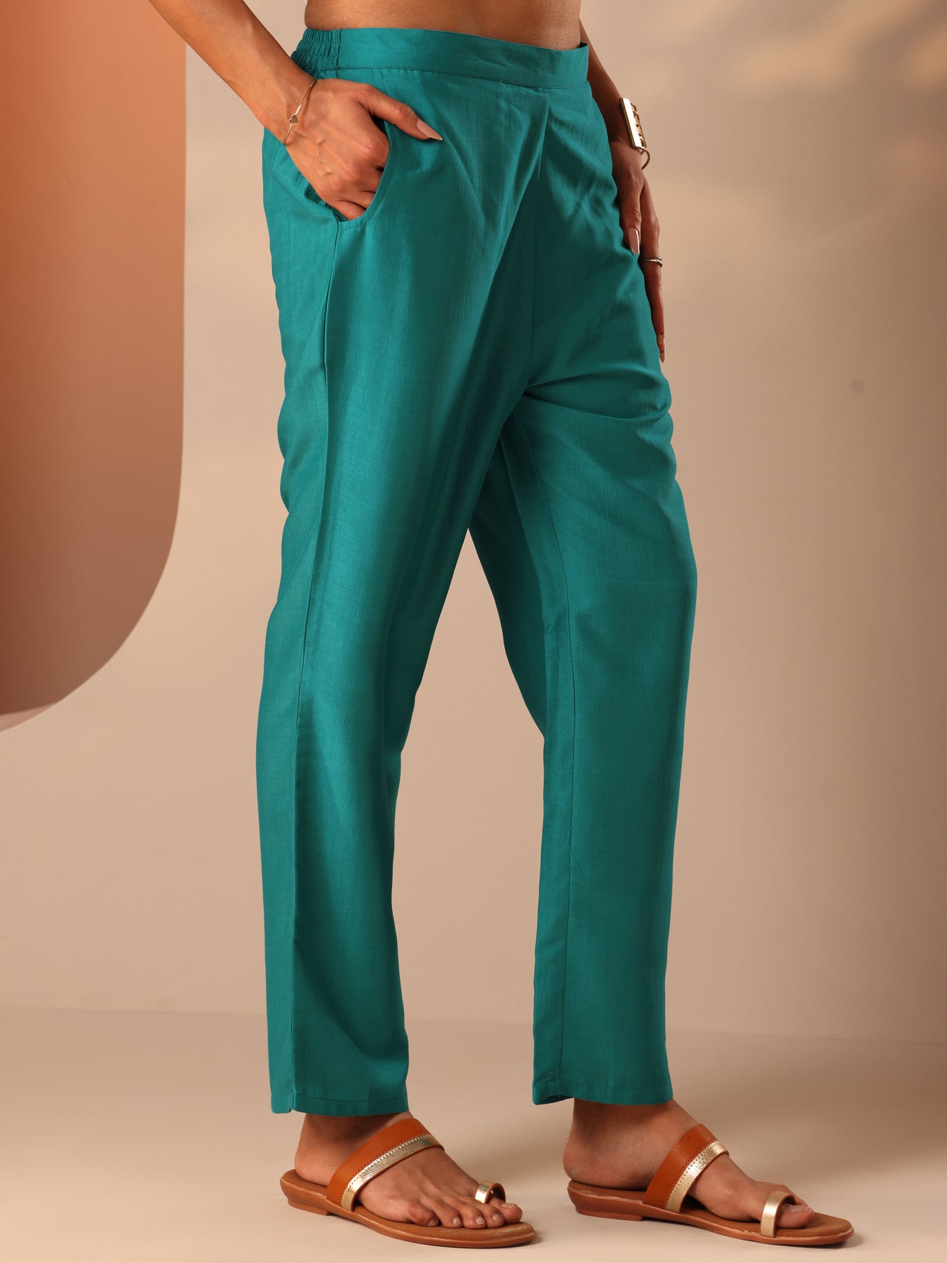 Our 3-piece Teal Silk Blend Kurta Set features a Straight-fit kurta with a Round Neckline, Regular Sleeves, and statement yoke. Complemented with Straight Pants with an Elasticated waistband and 2 pockets, and a Solid dupatta. Adorned with Printed accents and Embroidered details, this style is perfect for Festive Wear.