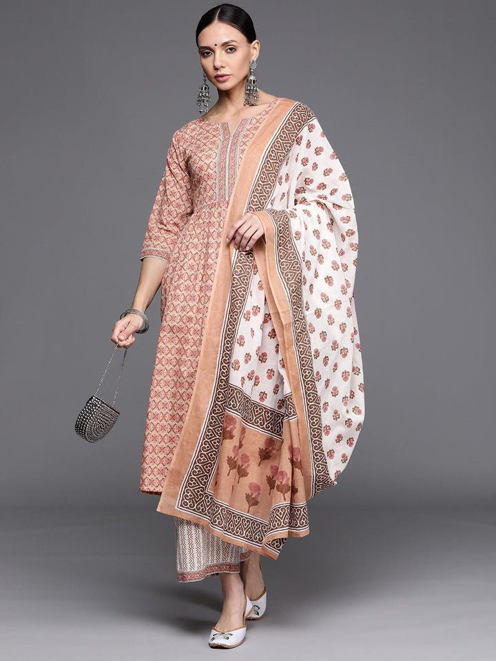 Buy Brown Printed Cotton Suit Set - 20328F-XS | Libas Ethnic Wear Online