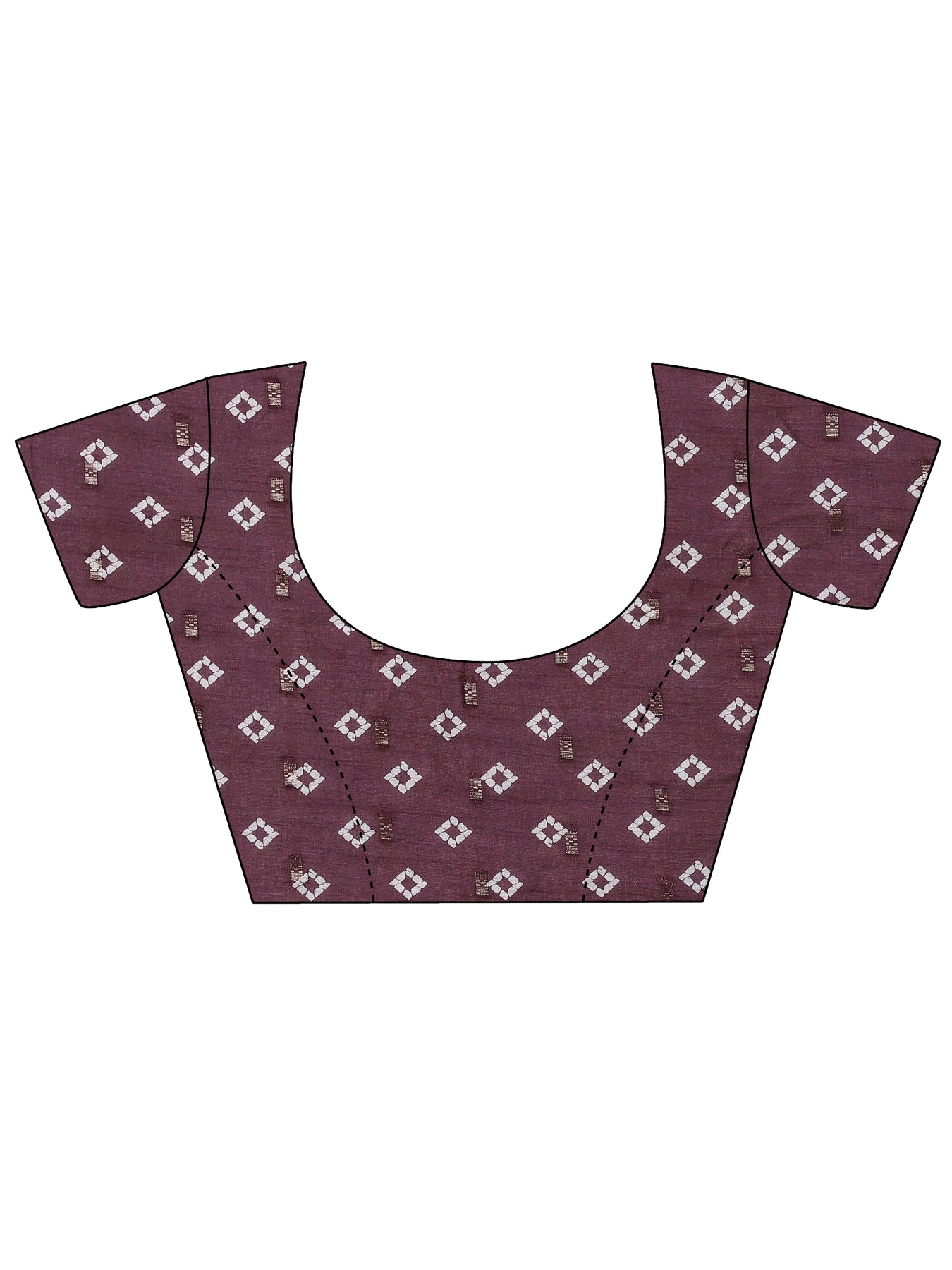 Brown Printed Silk Blend Saree With Unstitched Blouse Piece