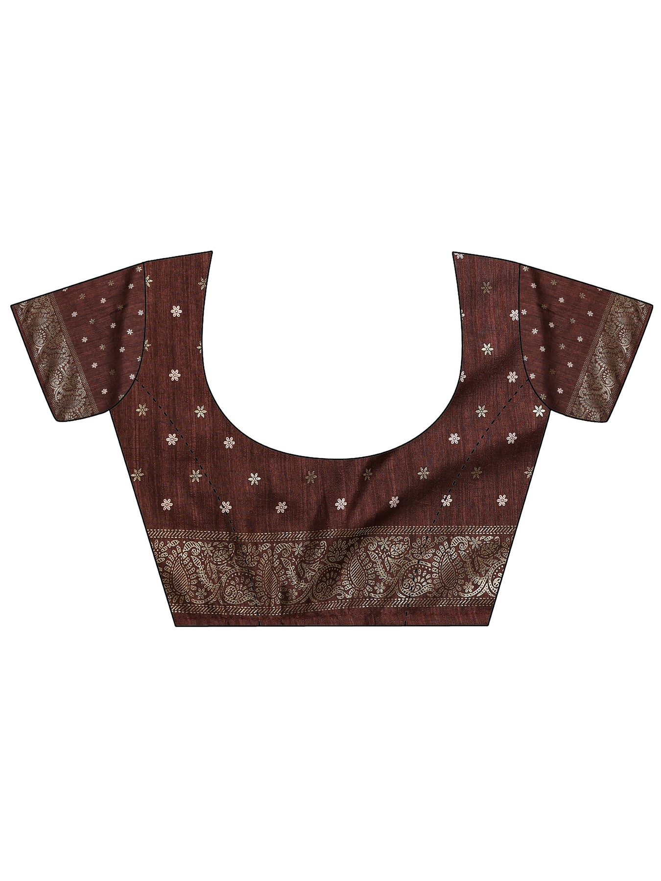 Brown Woven Design Silk Blend Saree With Unstitched Blouse Piece