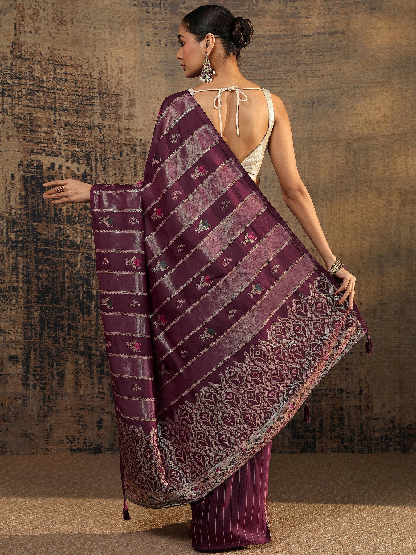 Burgundy Woven Design Silk Blend Saree With Unstitched Blouse Piece