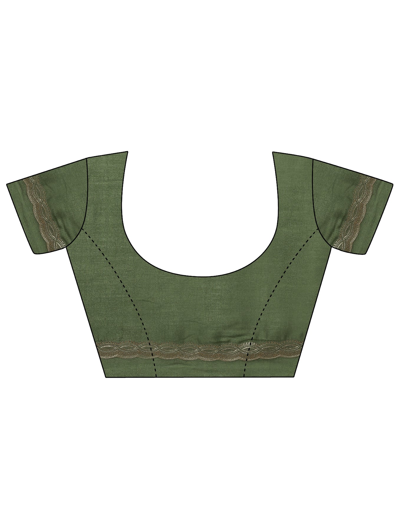 Green Embroidered Silk Blend Saree With Unstitched Blouse Piece