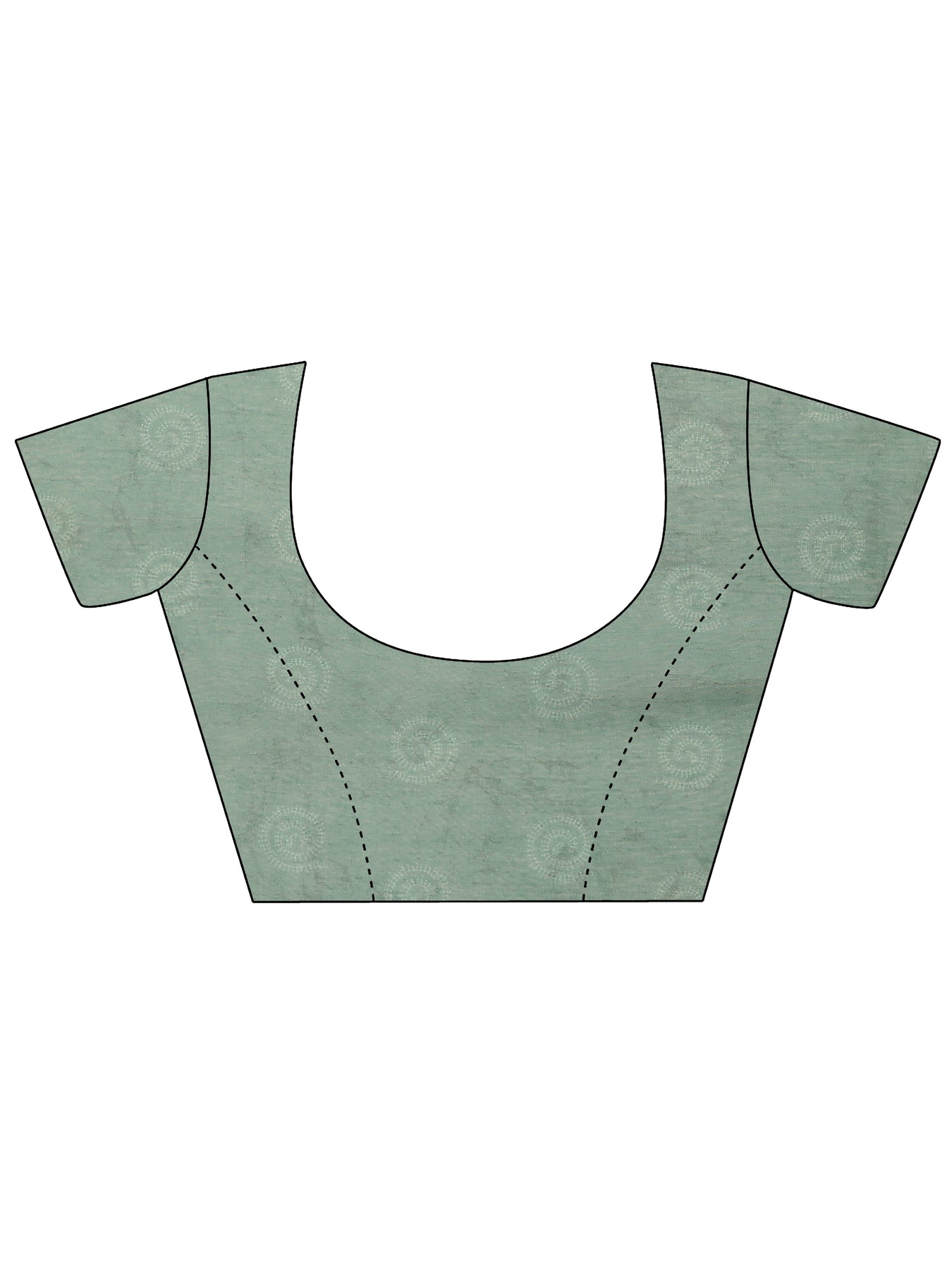 Green Printed Silk Blend Saree With Unstitched Blouse Piece