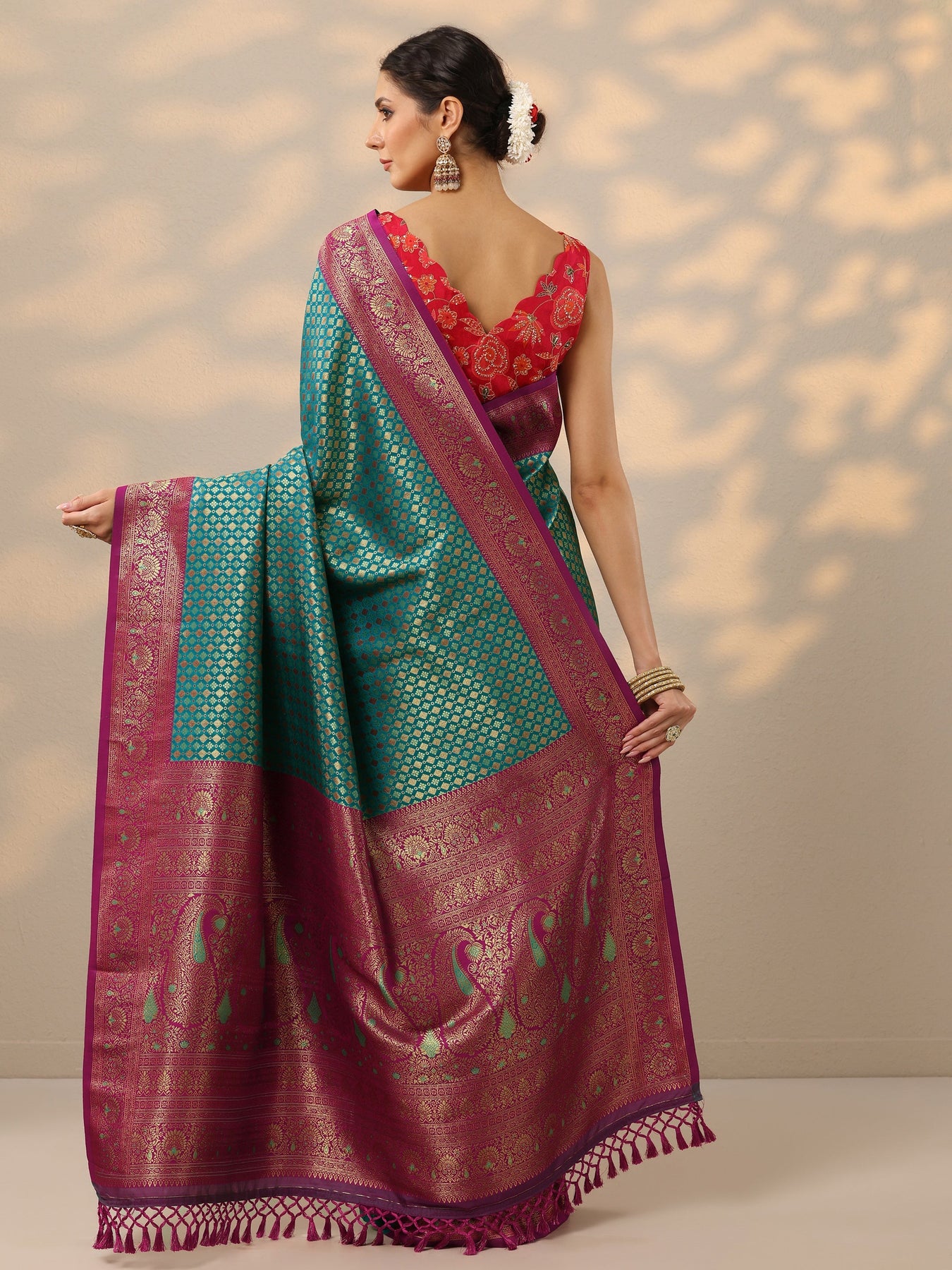 Green Woven Design Banarasi Silk Blend Saree With Unstitched Blouse Pi