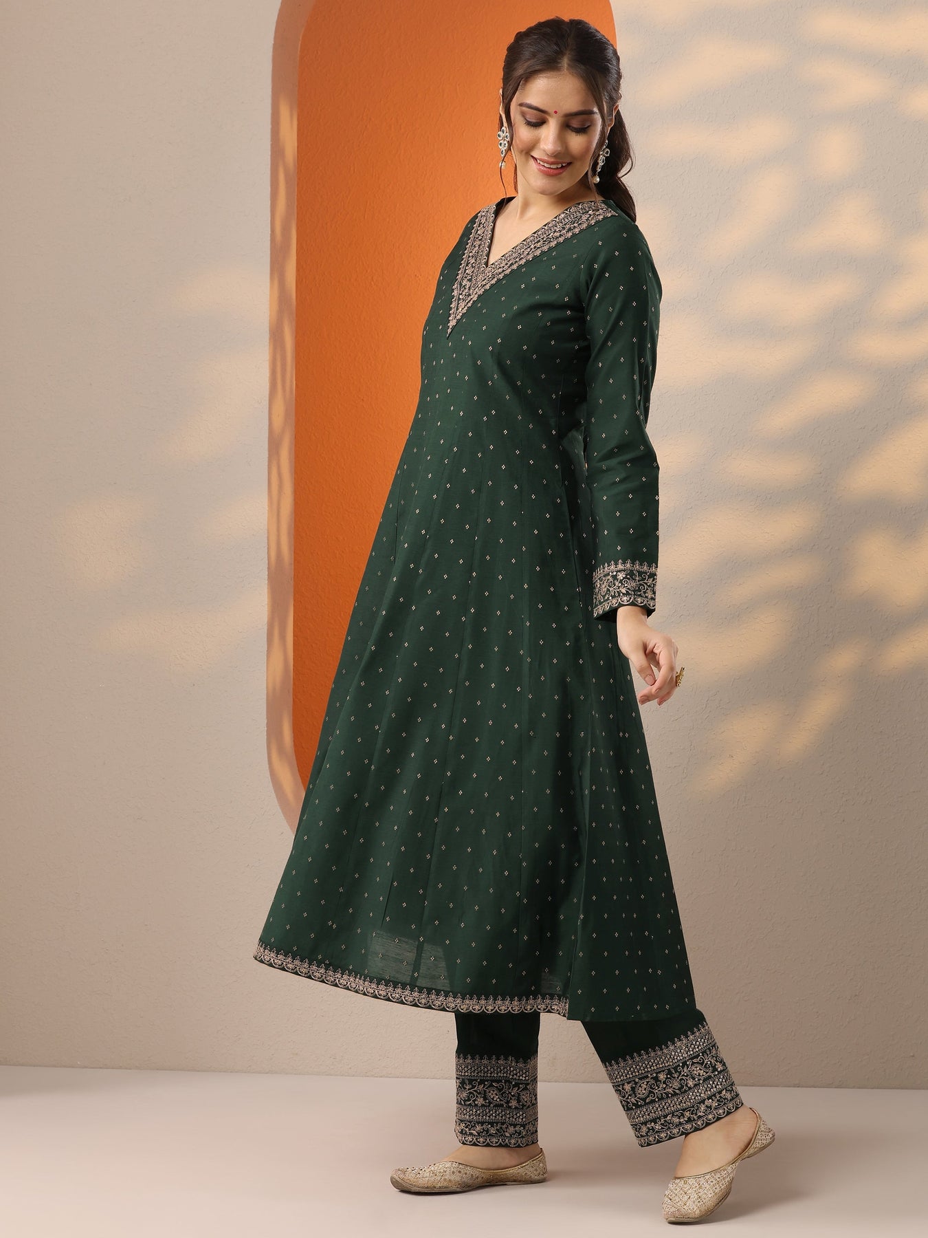 Malini Green Woven Design Silk Blend Anarkali Suit Set With Dupatta