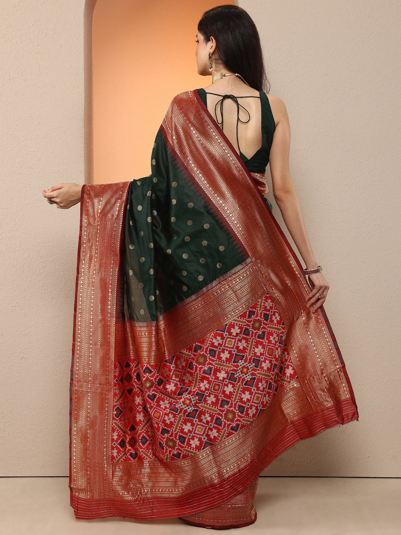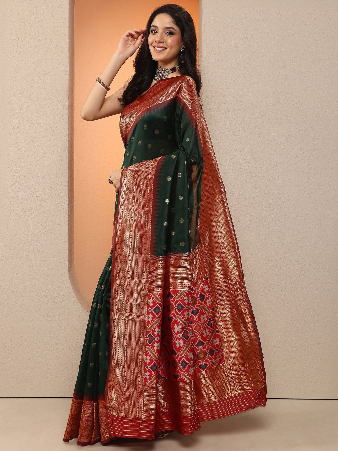 Green Woven Design Silk Blend Saree With Unstitched Blouse Piece