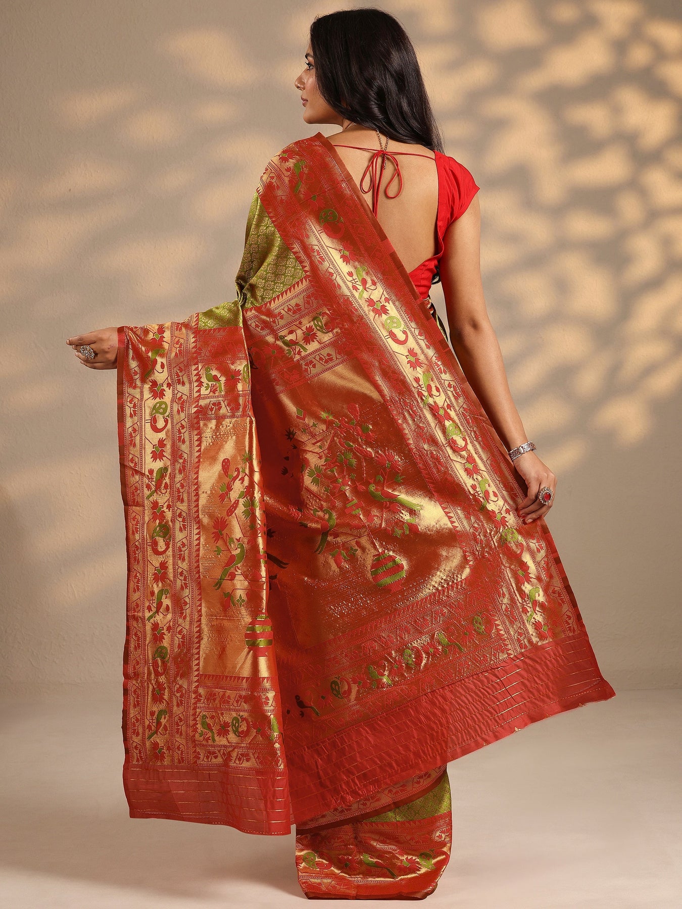 Green Woven Design Silk Blend Saree With Unstitched Blouse Piece