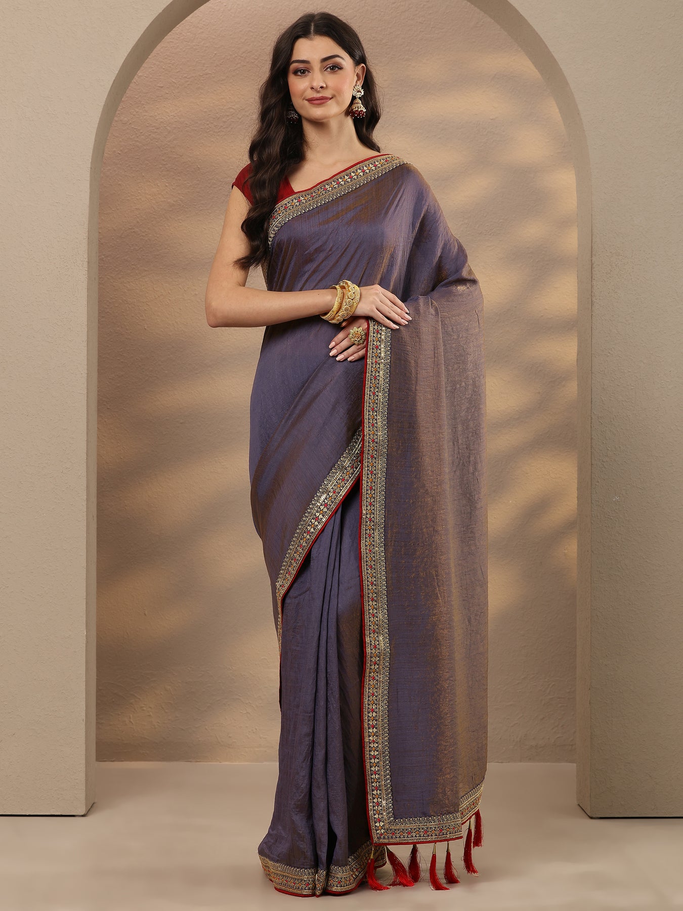 Our Lavender Solid Sarees Silk Blend Saree Features Captivating Solid. Complemented With An Unstitched Blouse Piece. This Charming Saree Is Perfect For Festive Occasions.