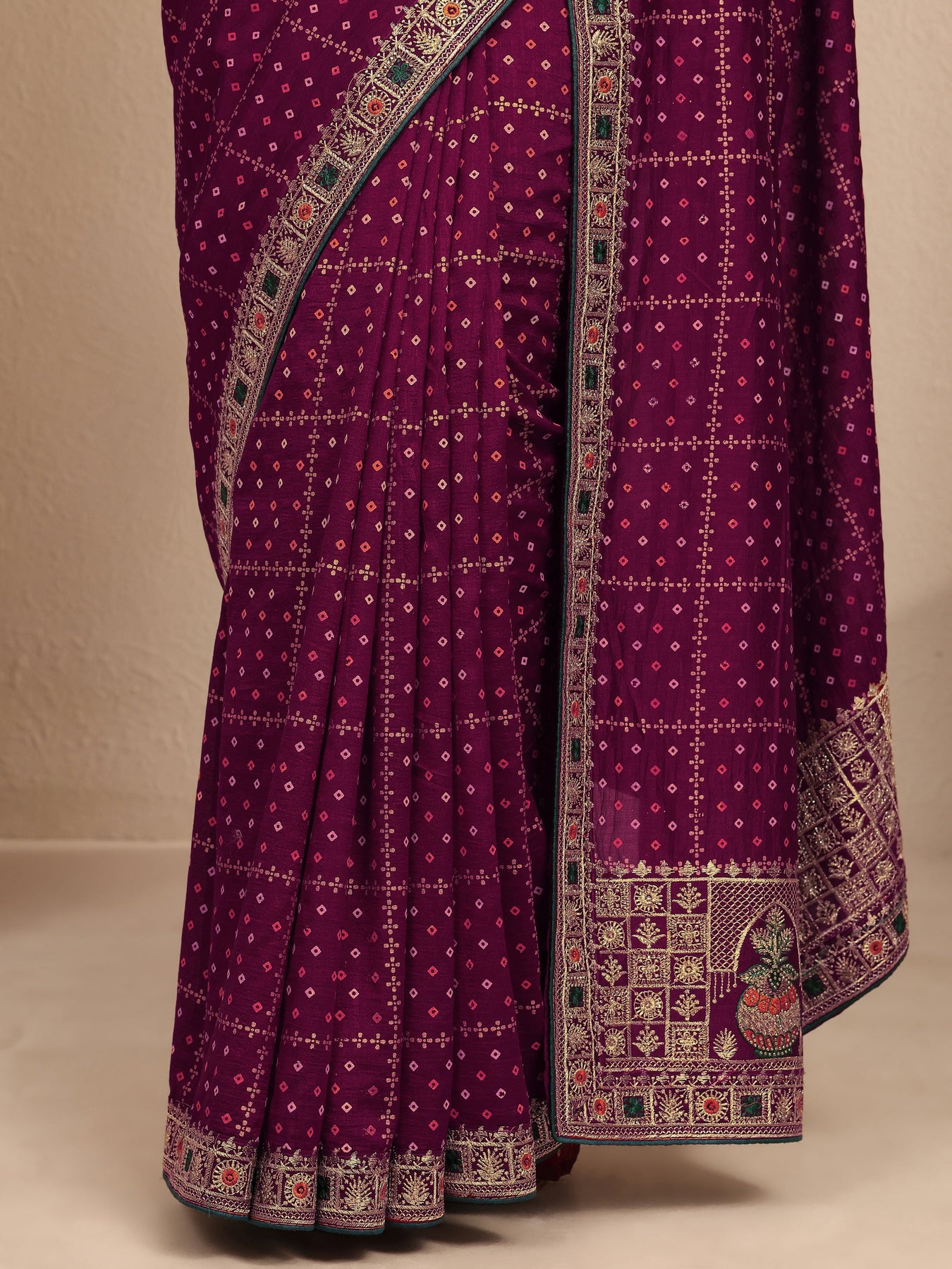 Maroon Bandhani Printed Silk Blend Saree With Unstitched Blouse Piece