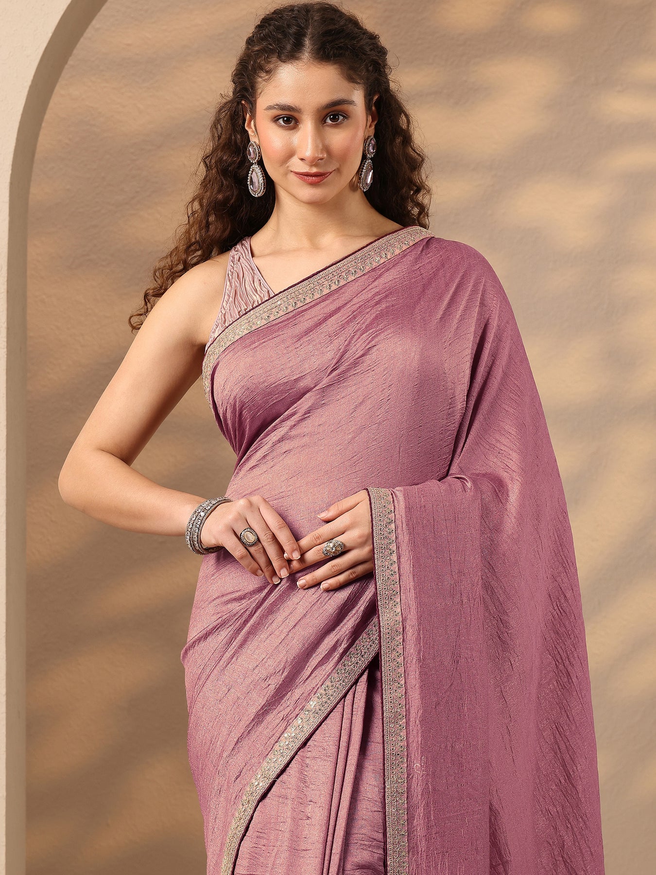 Our Mauve Solid Sarees Silk Blend Saree Features Captivating Solid. Complemented With An Unstitched Blouse Piece. This Charming Saree Is Perfect For Festive Occasions.