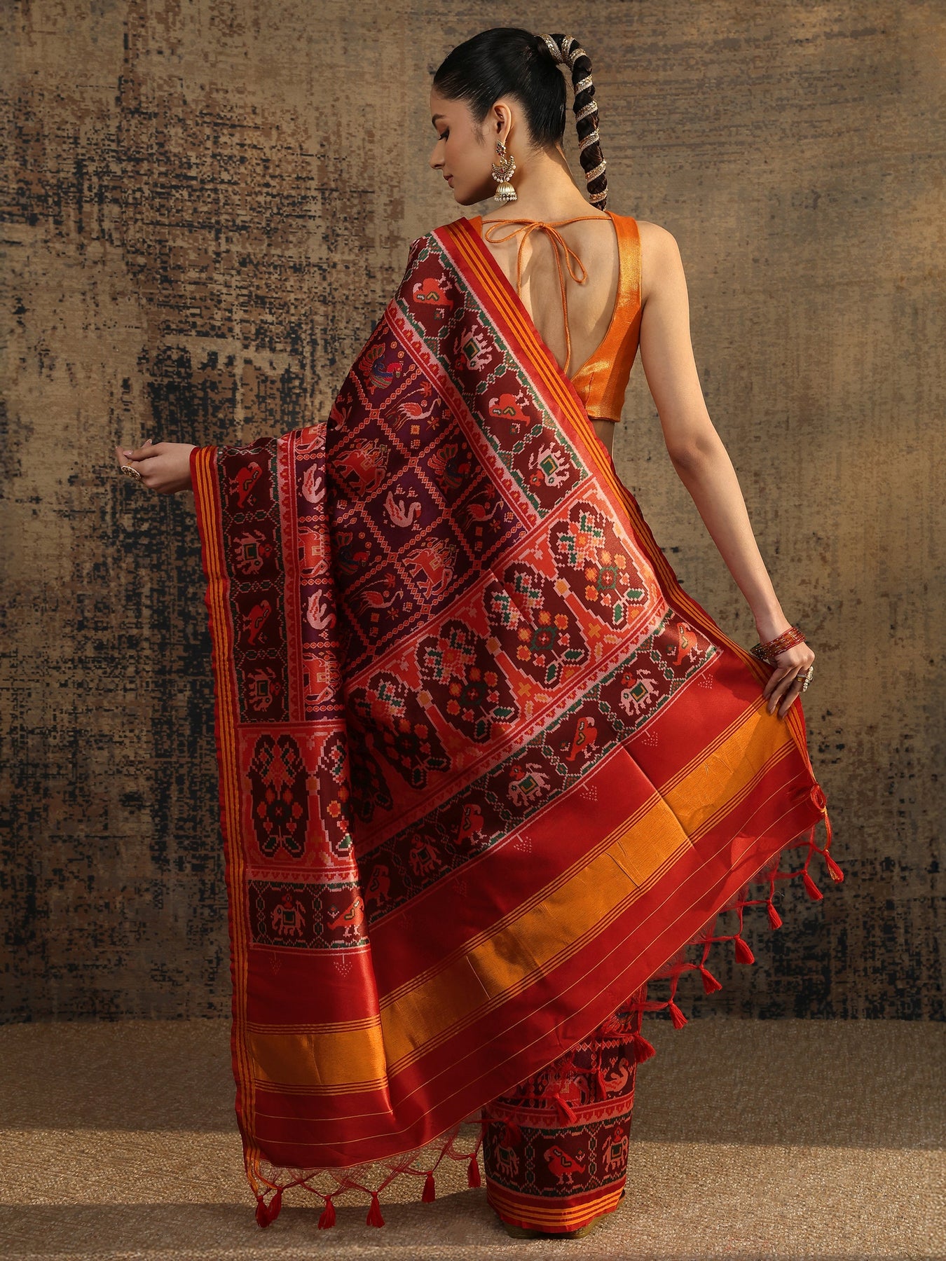 Multi Tribal Printed Silk Saree With Unstitched Blouse Piece