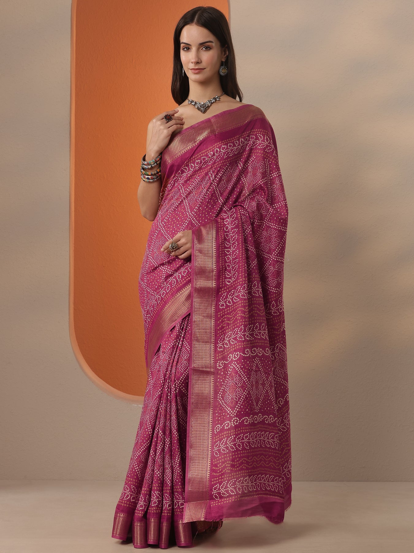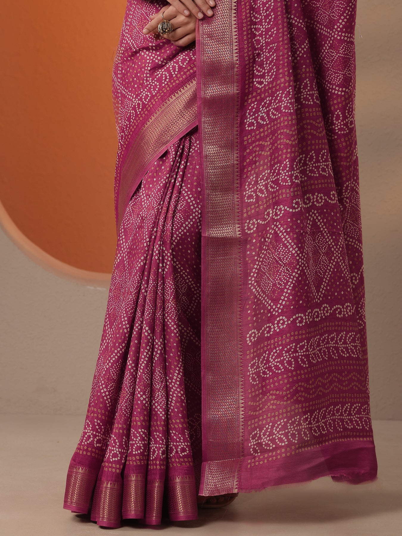 Pink Bandhani Printed Silk Blend Saree With Unstitched Blouse Piece