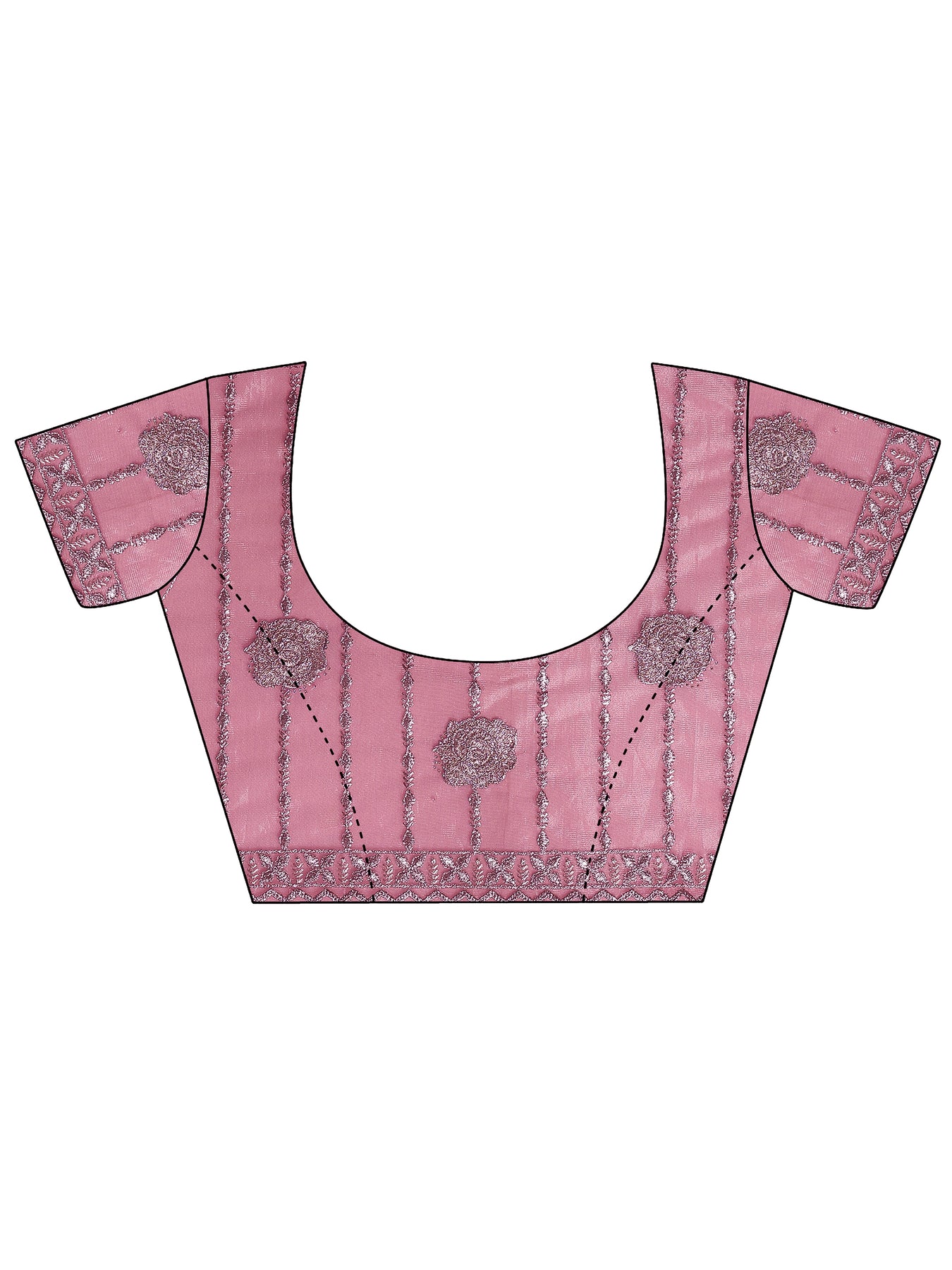 Pink Embroidered Nylon Saree With Unstitched Blouse Piece