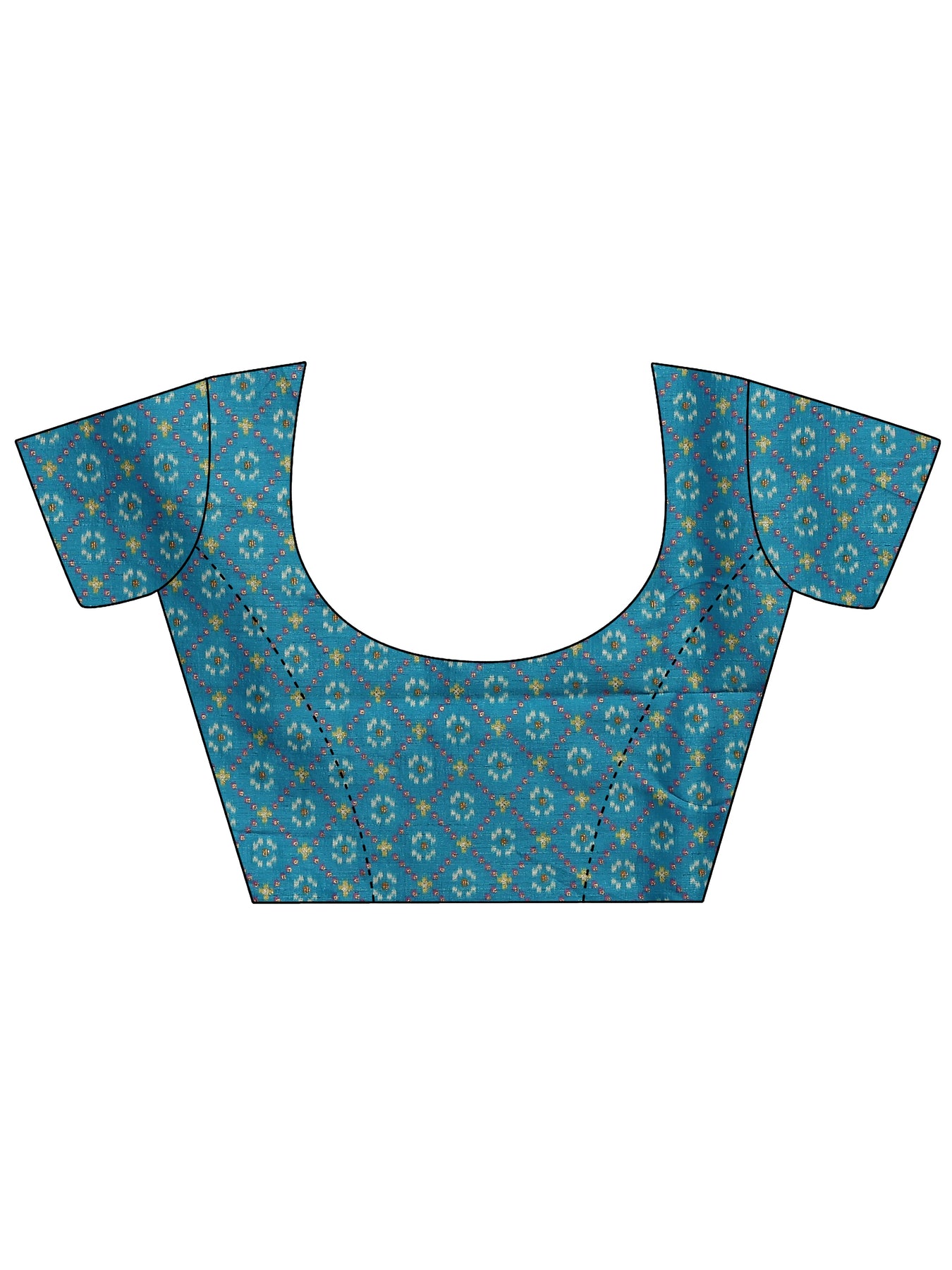 Pink Printed Silk Blend Saree With Unstitched Blouse Piece
