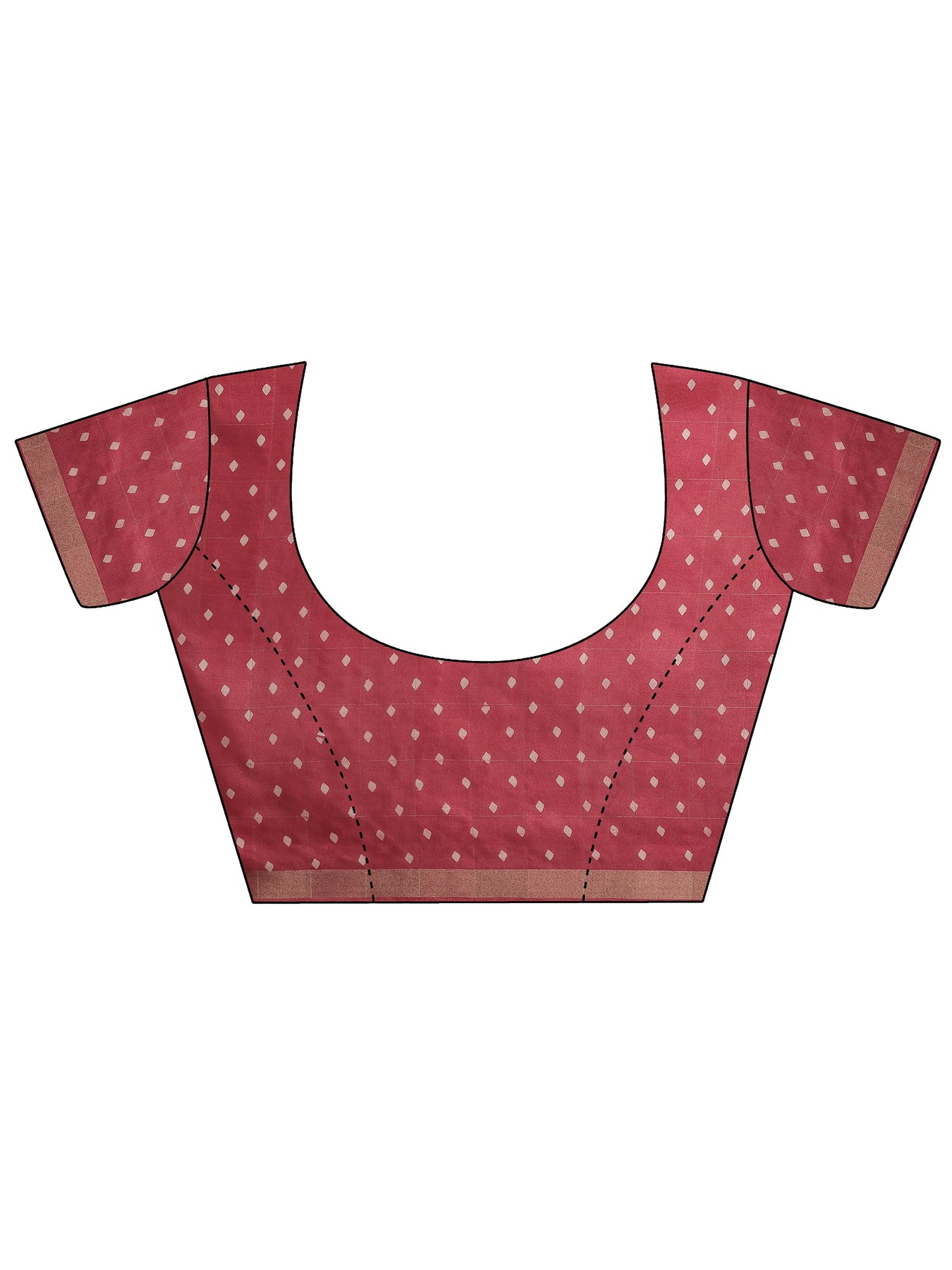 Pink Printed Silk Blend Saree With Unstitched Blouse Piece