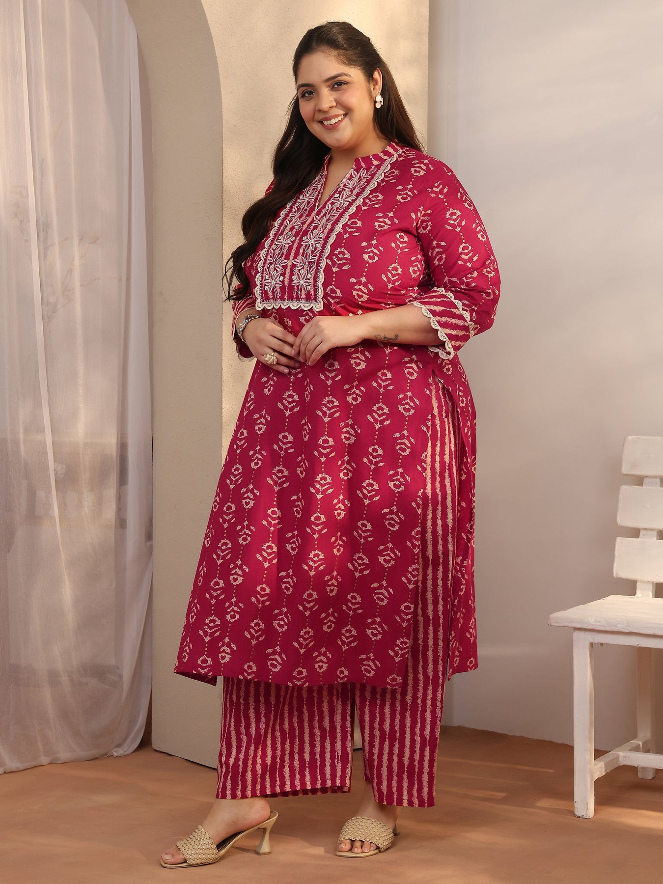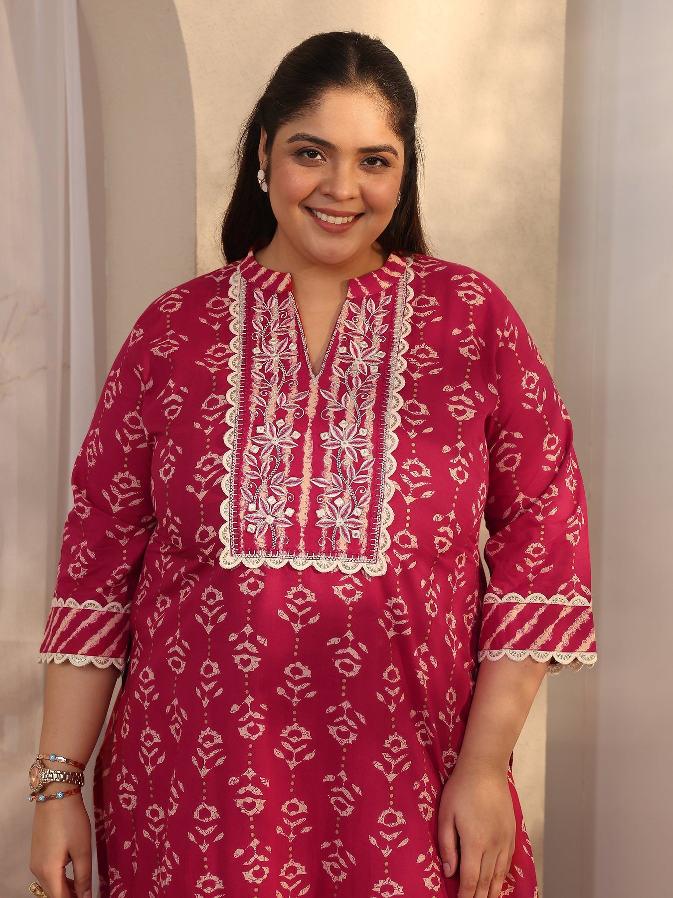 Our 2-piece Red Cotton Straight-fit set features a Mandarin Collar, Regular Sleeves, and statement yoke. Complemented with Straight Pants with a Partially Elasticated waistband and 2 pockets. Adorned with Floral Motif Printed, this style is perfect for Work Wear and Casual Wear.
