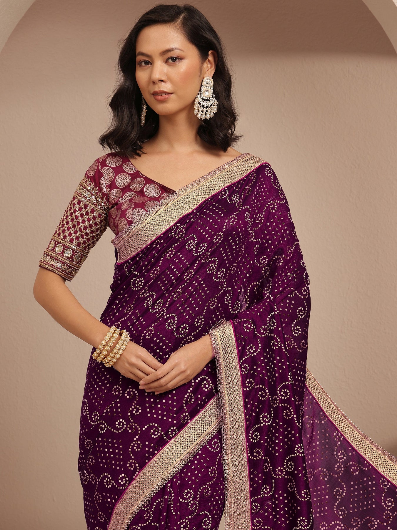Purple Bandhani Printed Silk Blend Saree With Unstitched Blouse Piece