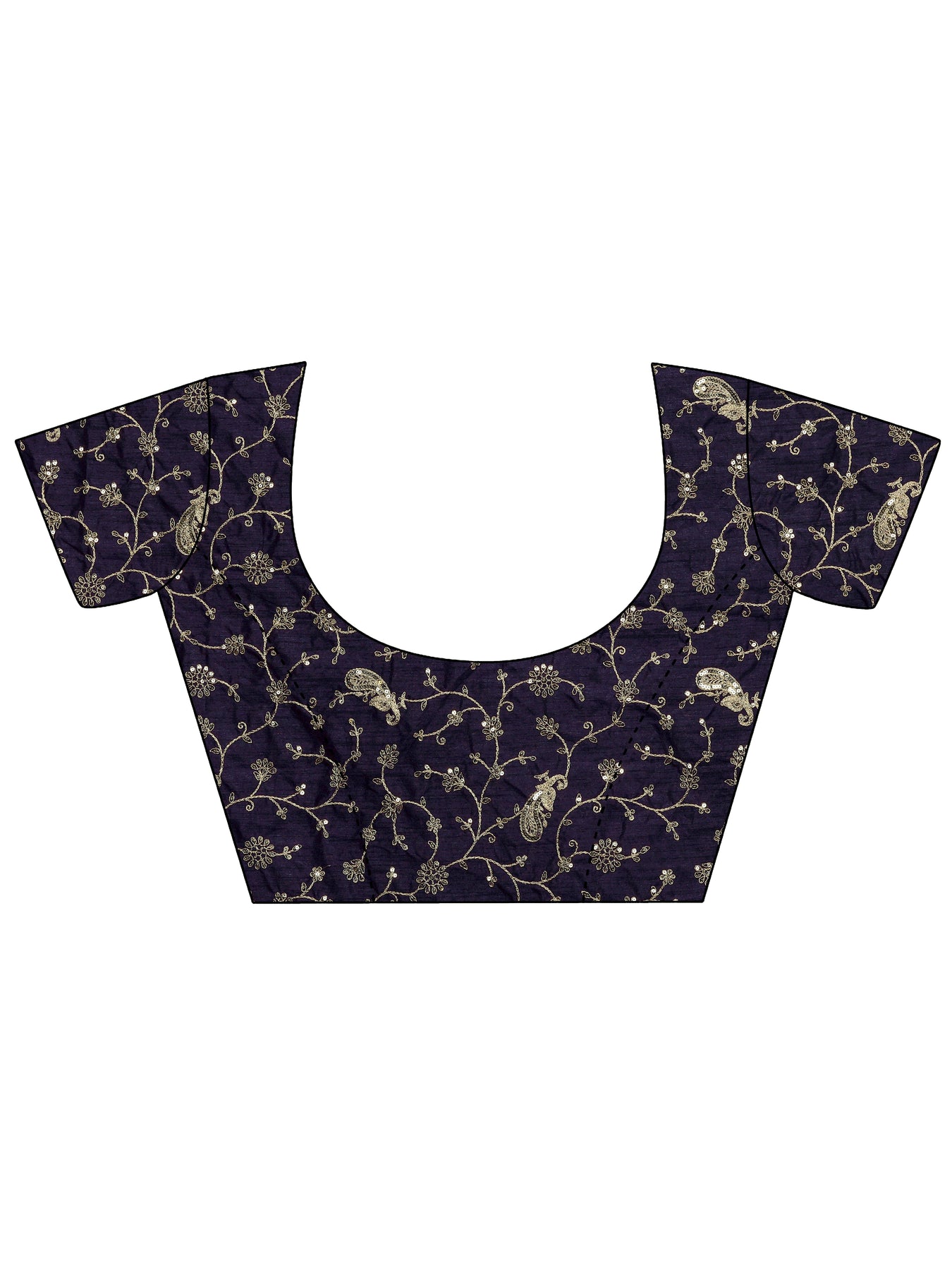 Our Purple Embroidered Silk Blend Saree Features Captivating Striped. Complemented With An Unstitched Blouse Piece. This Charming Saree Is Perfect For Festive Occasions.