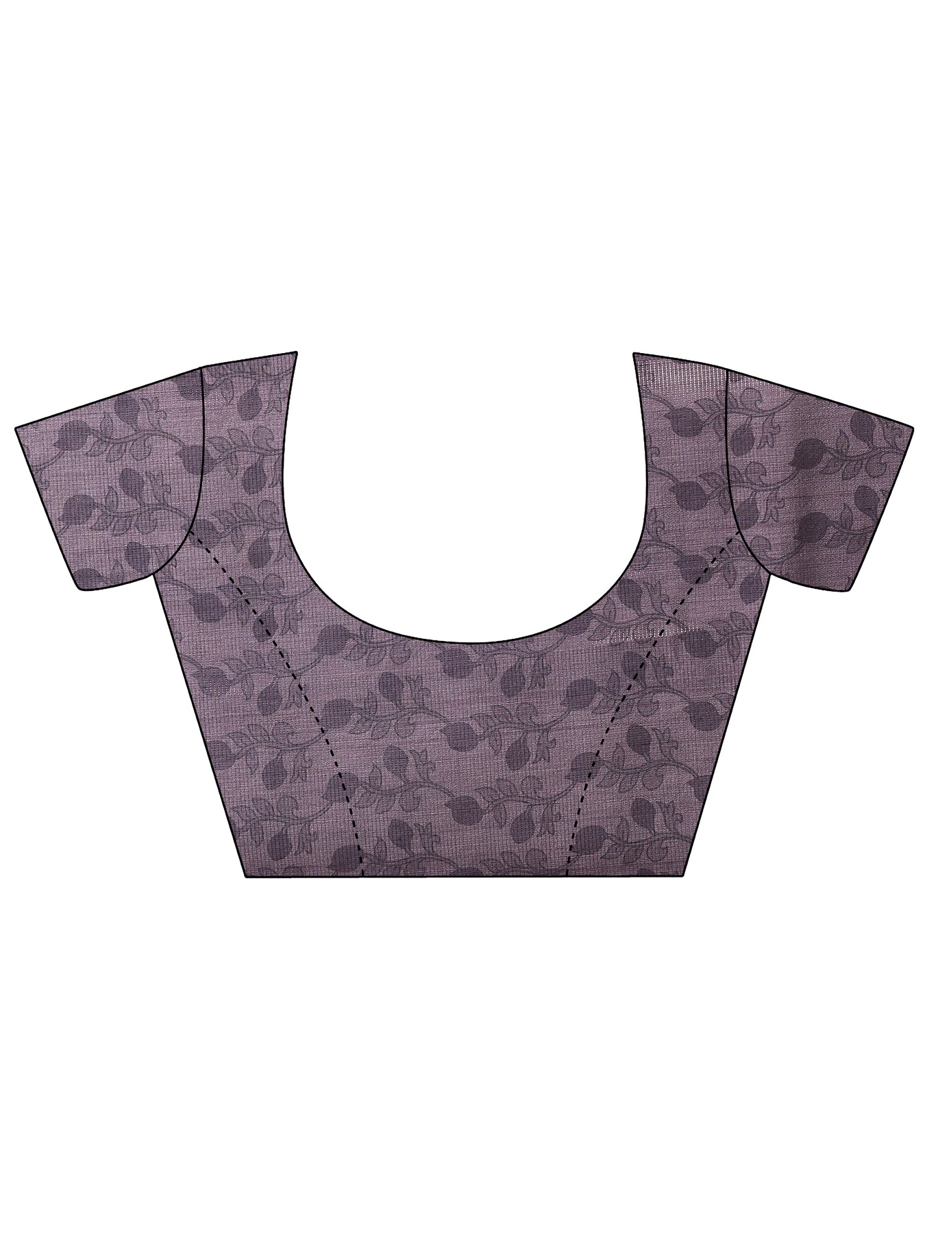 Taupe Printed Silk Blend Saree With Unstitched Blouse Piece